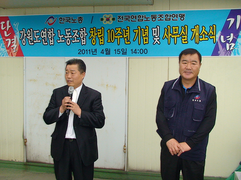 2011³â 4¿ù 15ÀÏ °³ÃÖµÈ °¿øµµ¿¬ÇÕ³ëÁ¶ ⸳ 10Áֳ⠱â³ä ¹× »ç¹«½Ç °³¼Ò½Ä Çà»çÀÔ´Ï´Ù.