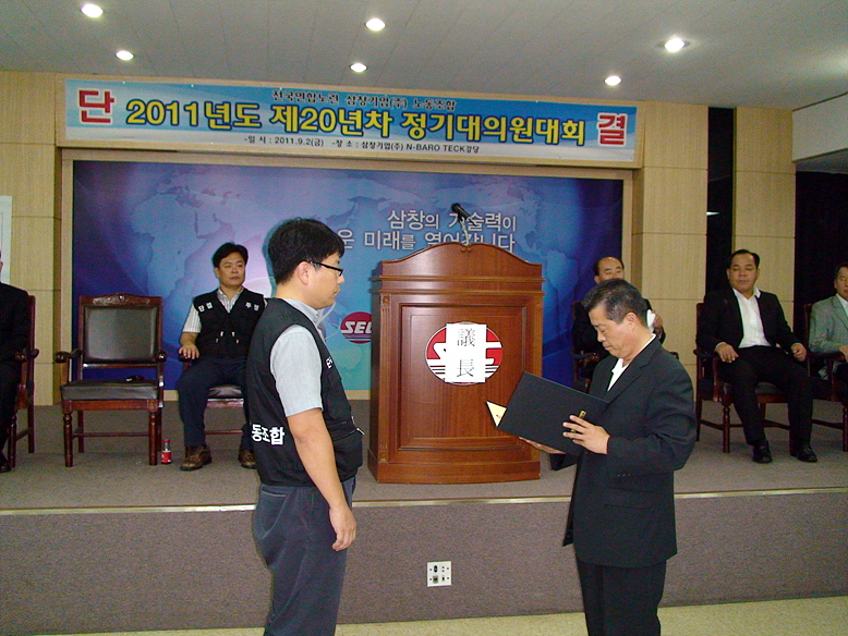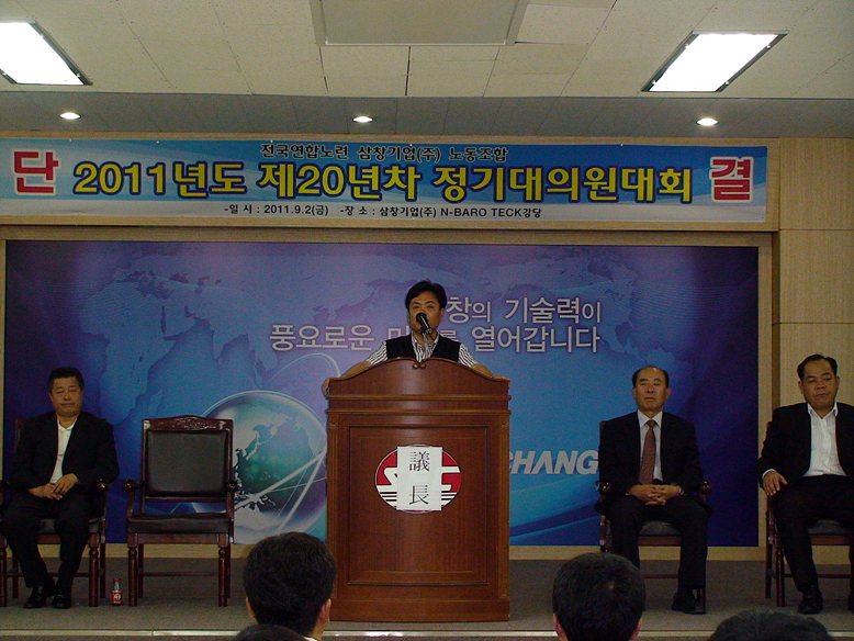 2011³â 9¿ù 2ÀÏ °³ÃÖµÈ »ïâ±â¾÷³ëµ¿Á¶ÇÕ 2011³âµµ Á¤±â´ëÀÇ¿ø´ëȸ Çà»çÀÔ´Ï´Ù.