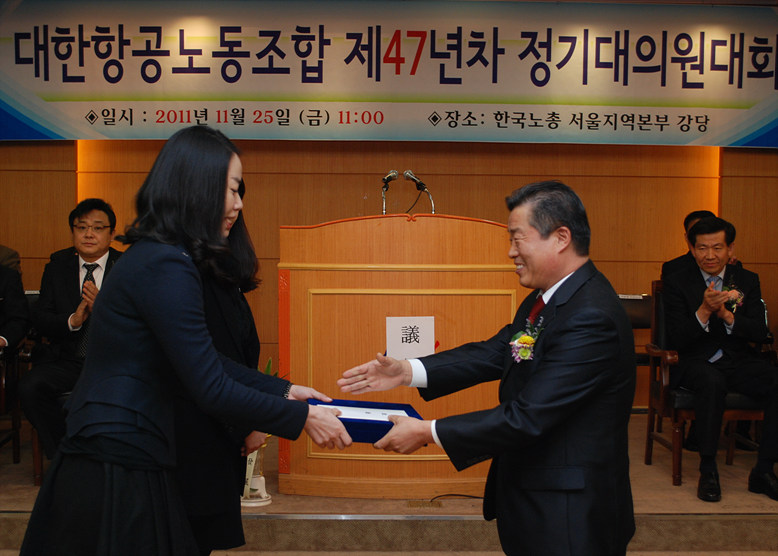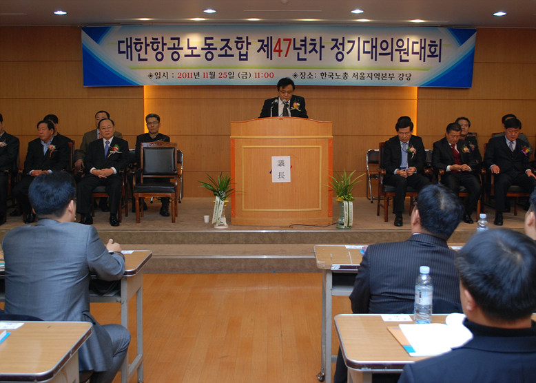 2011³â 11¿ù 25ÀÏ °³ÃÖµÈ ´ëÇÑÇ×°ø³ëµ¿Á¶ÇÕ Á¦47³âÂ÷ Á¤±â´ëÀÇ¿ø´ëȸ ÀÔ´Ï´Ù.