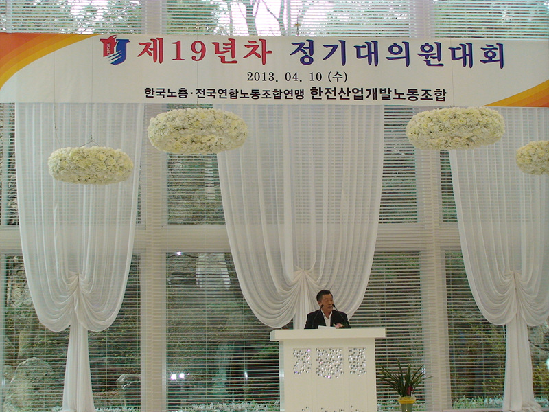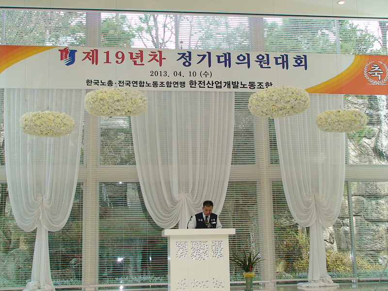 2013³â 4¿ù 10ÀÏ °³ÃÖµÈ ÇÑÀü»ê¾÷°³¹ß³ëµ¿Á¶ÇÕ Á¦19³âÂ÷ Á¤±â´ëÀÇ¿ø´ëȸ Çà»çÀÔ´Ï´Ù.