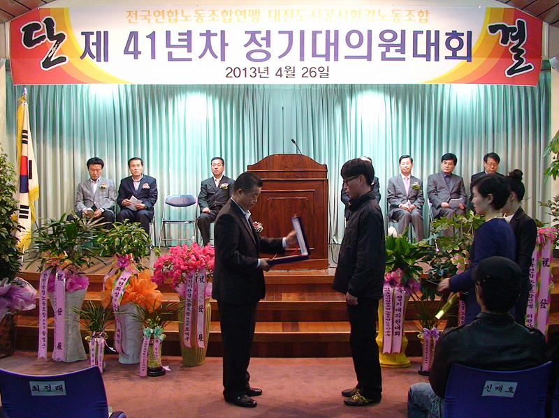2013³â 4¿ù 26ÀÏ °³ÃÖµÈ ´ëÀüµµ½Ã°ø»çȯ°æ³ëµ¿Á¶ÇÕ Á¦ 41³âÂ÷ Á¤±â´ëÀÇ¿ø´ëȸ Çà»çÀÔ´Ï´Ù.