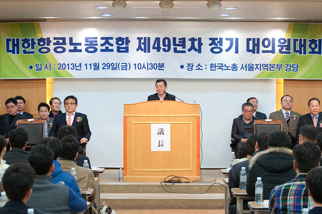 2013³â 11¿ù 29ÀÏÀÚ ´ëÇÑÇ×°ø³ëµ¿Á¶ÇÕ Á¦49³âÂ÷ Á¤±â´ëÀÇ¿ø´ëȸ°¡ °³ÃֵǾú½À´Ï´Ù.