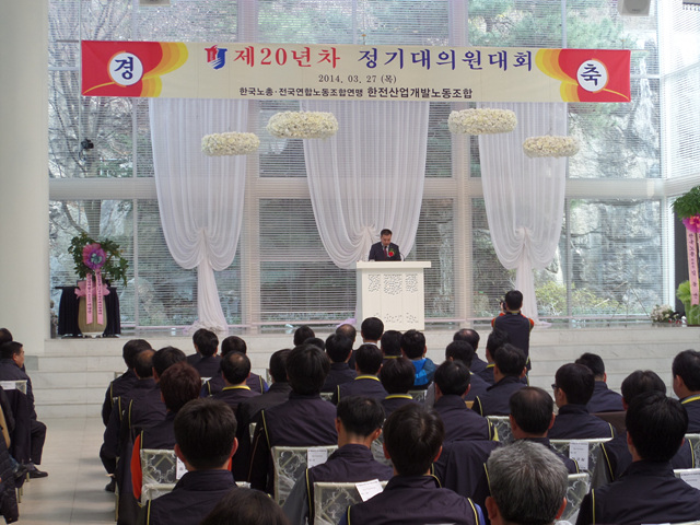 2014³â 3¿ù 27ÀÏ °³ÃÖµÈ ÇÑÀü»ê¾÷°³¹ß³ëµ¿Á¶ÇÕ Á¦20³âÂ÷ Á¤±â´ëÀÇ¿ø´ëȸ Çà»çÀÔ´Ï´Ù.
