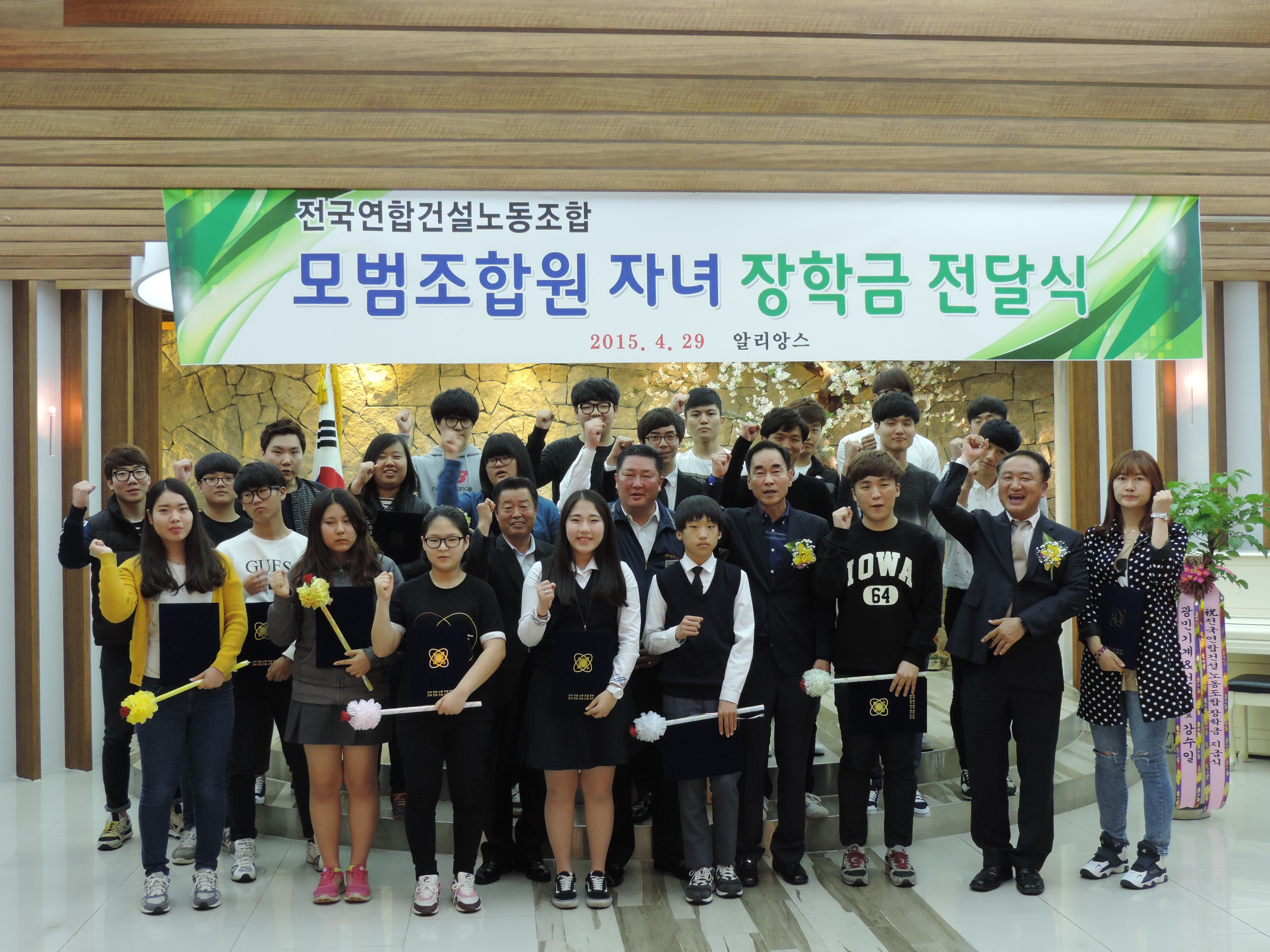 2015³â 4¿ù 29ÀÏÀÚ Àü±¹¿¬ÇհǼ³³ëµ¿Á¶ÇÕ ¸ð¹üÁ¶ÇÕ¿ø ÀÚ³à ÀåÇÐ±Ý Àü´Þ½ÄÀÌ °³ÃֵǾú½À´Ï´Ù.