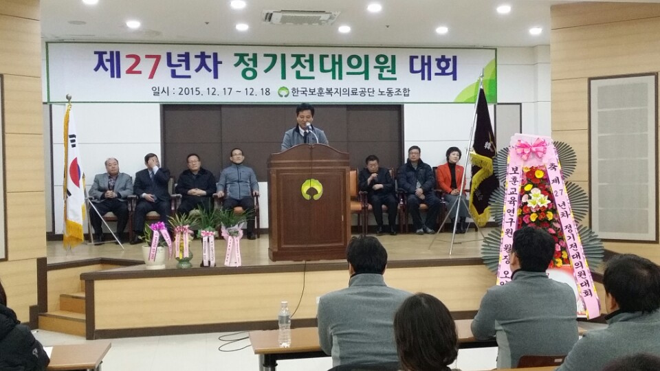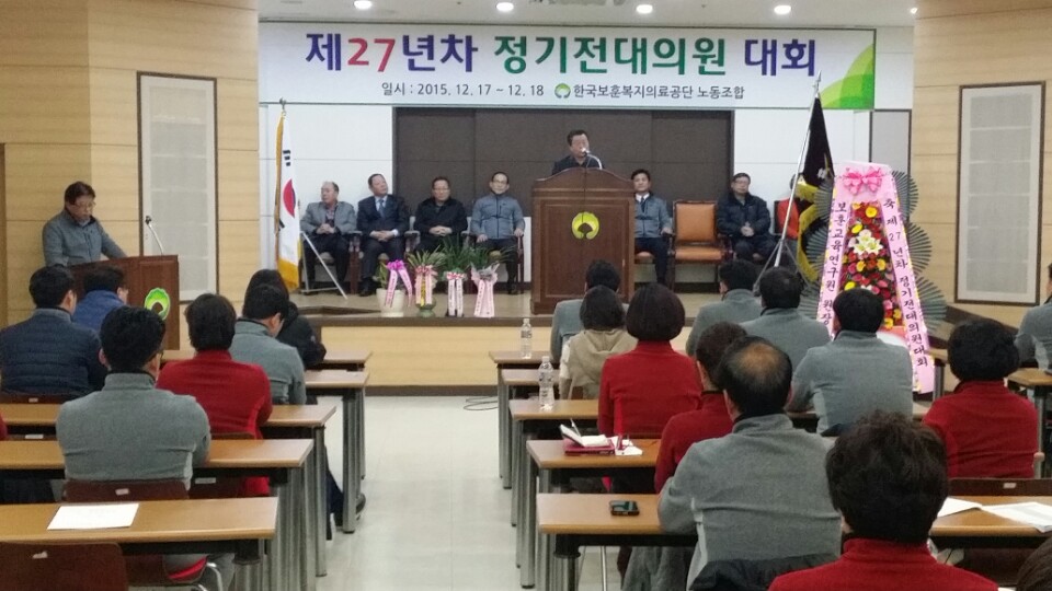 2015³â 12¿ù 17ÀÏÀÚ Çѱ¹º¸Èƺ¹ÁöÀÇ·á°ø´Ü³ëµ¿Á¶ÇÕ Á¦27³âÂ÷ ´ëÀÇ¿ø ´ëȸ°¡ °³ÃֵǾú½À´Ï´Ù.