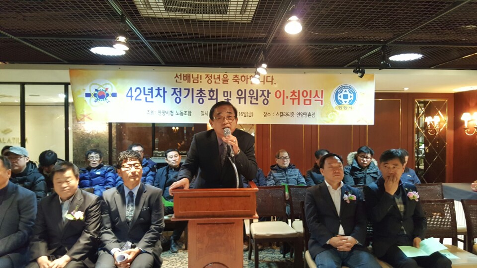 2016³â 12¿ù 16ÀÏ ¾È¾ç½Ãû³ëµ¿Á¶ÇÕ Á¦42³âÂ÷ Á¤±âÃÑȸ ¹× ÀÌÃëÀÓ½ÄÀÌ °³ÃֵǾú½À´Ï´Ù.