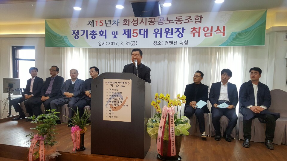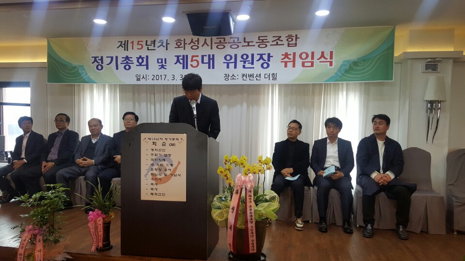2017³â 3¿ù 31ÀÏ È¼º½Ã°ø°ø³ëµ¿Á¶ÇÕ Á¦ 15³âÂ÷ Á¤±âÃÑȸ ¹× Á¦ 5´ë À§¿øÀå ÃëÀÓ½ÄÀÌ °³ÃֵǾú½À´Ï´Ù.