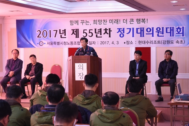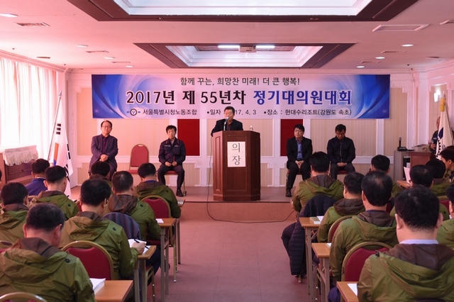 2017³â 4¿ù 3ÀÏ, ¼¿ïƯº°½Ãû³ëµ¿Á¶ÇÕ Á¦55³âÂ÷ Á¤±â´ëÀÇ¿ø´ëȸ°¡ °³ÃֵǾú½À´Ï´Ù.