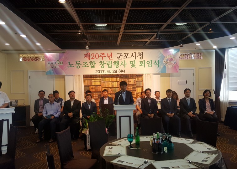 2017. 6. 28. 10½Ã 30ºÐ ±ºÆ÷½Ãû³ëµ¿Á¶ÇÕ (À§¿øÀå È«¹üÁØ) Á¤±âÃÑȸ ¹× Á¤³âÅðÀÓ½ÄÀÌ °³ÃֵǾú½À´Ï´Ù.