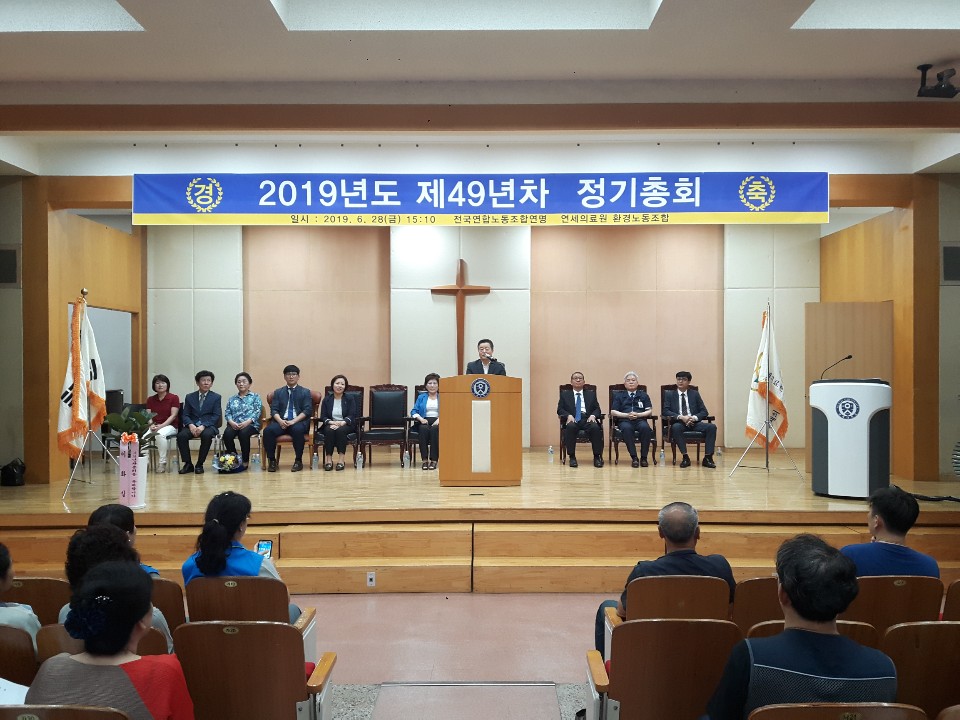 2019. 6. 28, ¿¬¼¼ÀÇ·áȯ°æ³ëµ¿Á¶ÇÕ Á¦49³âÂ÷ Á¤±âÃÑȸÀÌ °³ÃֵǾú½À´Ï´Ù.