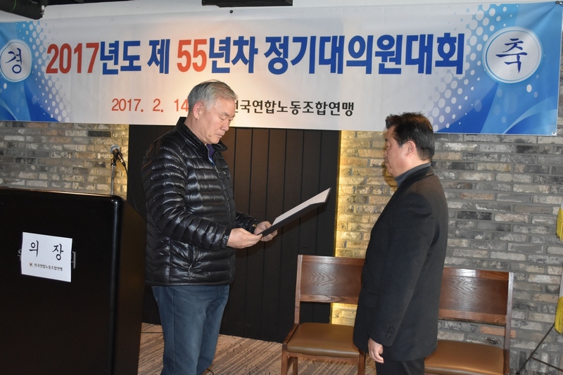 ¿¬ÇÕ³ë·Ã 2017³âµµ Á¦55³âÂ÷ Á¤±â´ëÀÇ¿ø´ëȸ°¡ 2¿ù 14ÀÏ, ¿ÀÈÄ 2½Ã Çѱ¹³ëÃÑ 13Ãþ ¿þµù¿©À²¸®¿¡¼ °³ÃֵǾúÀ¸¸ç, ´Üµ¶ È帷ΠÃ⸶ÇÑ ÀÌ´ë±Ô È帰¡ ÀçÀû ´ëÀÇ¿ø 118¸í Áß 90¸íÀÌ ÅõÇ¥¿¡ Âü¿©, Âù¼º 80Ç¥¸¦ µæÇ¥ÇÏ¿© ³ë·Ã Á¦24´ë À§¿øÀå¿¡ ´ç¼±µÇ¾ú´Ù